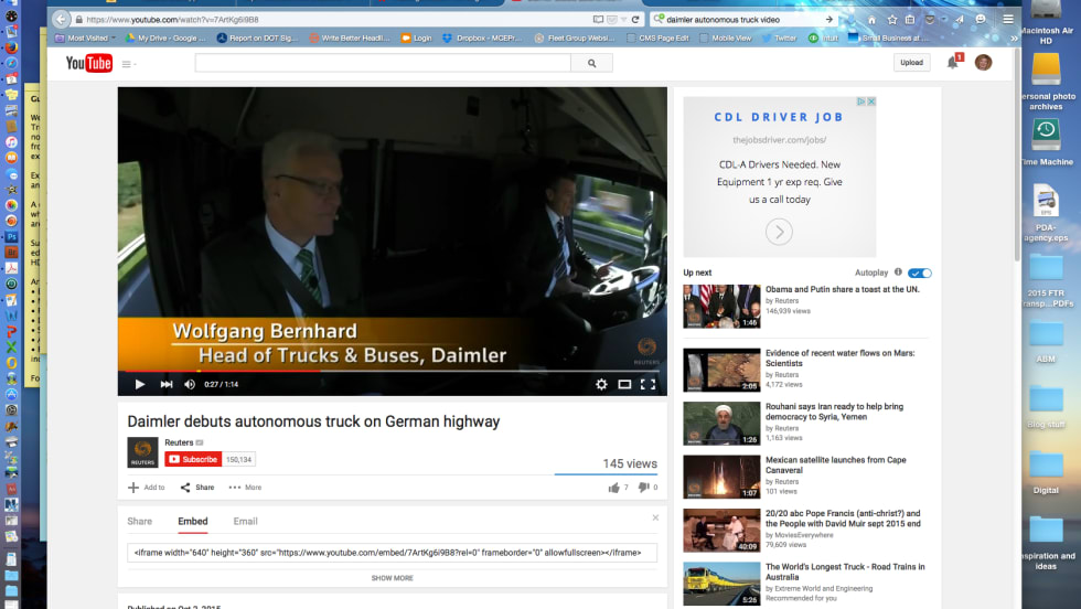 In Germany Oct. 2, Daimler Trucks ran a real-world test of what it says is the first series-production truck to operate on an automated basis on the highway, albeit with special permitting and a police escort. Reuters has this video.