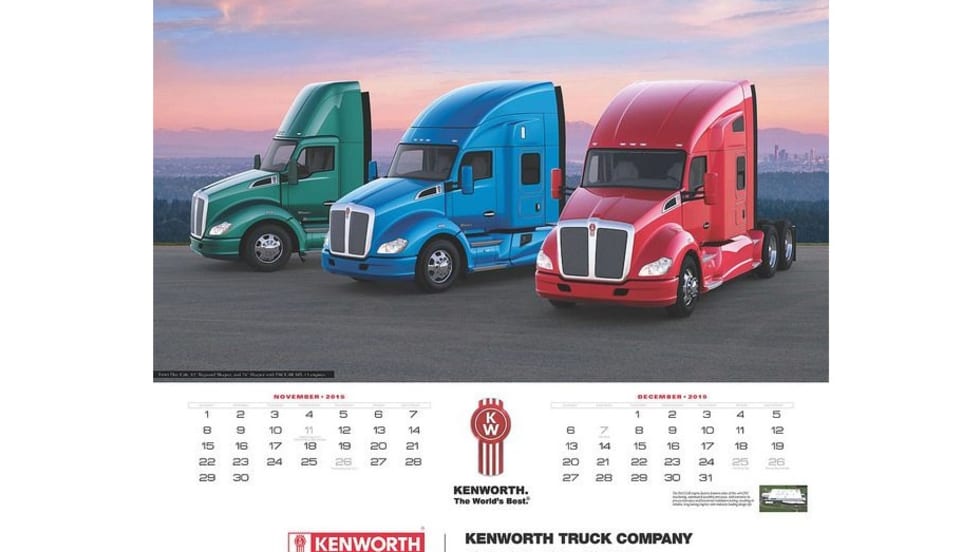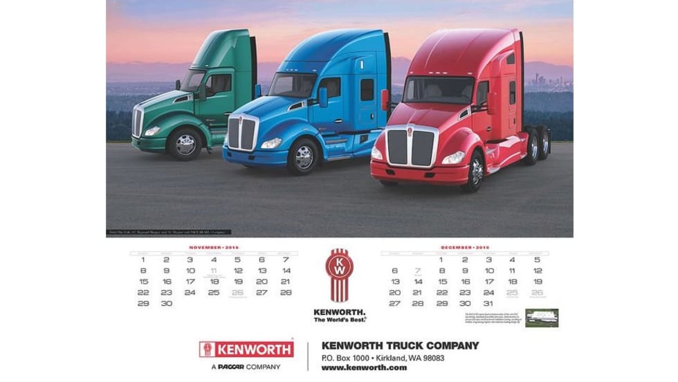 The 2015 Kenworth Calendar featuring The World’s Best Trucks is now available on the shop Kenworth website. The calendar features photos of Kenworth’s aerodynamic, vocational, traditional and medium duty trucks with scenic backgrounds.