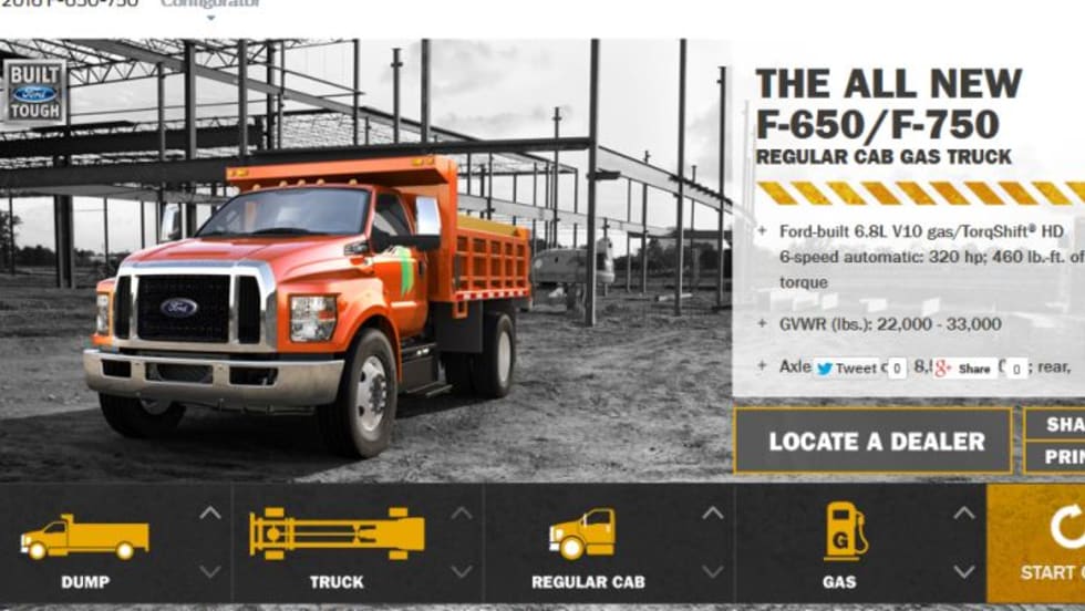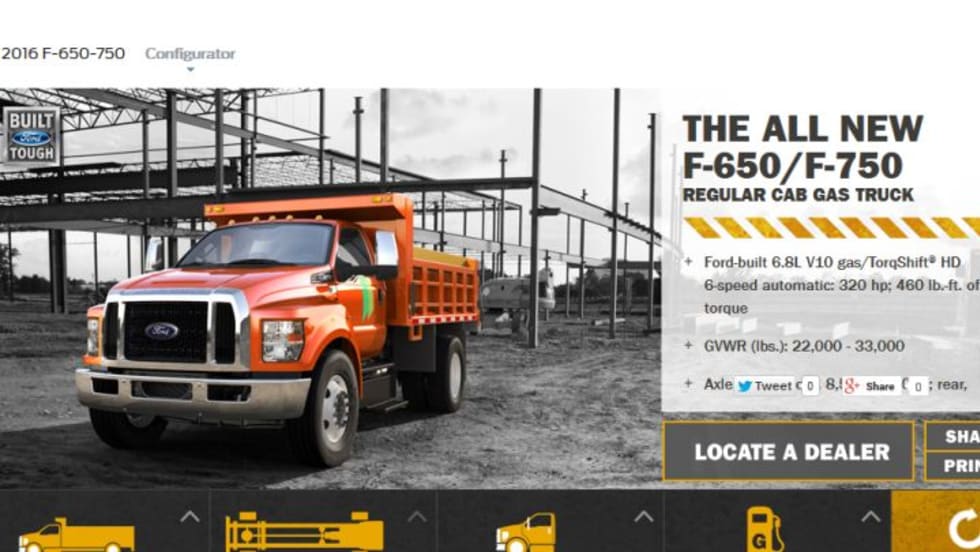 Ford has unveiled a configurator for its F-650 and F-750 medium-duty trucks that have been redesigned for the 2016 model year.