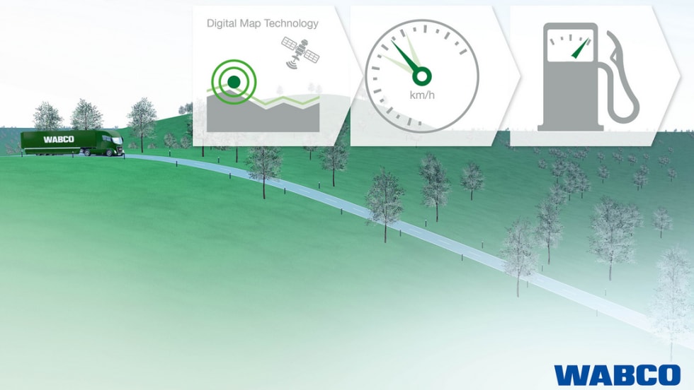 Wabco introduced its OptiPace predictive cruise control system for trucks and buses, which uses on-board digital maps and proprietary algorithms to anticipate and adapt the vehicle's speed based on the road ahead.