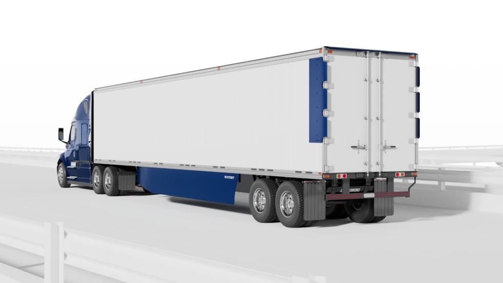 Transtex’s Edge TopKit+ system, featuring aerodynamic side and top rear fairings and mud flaps, has been pre-approved to meet California Air Resources Board emissions standards for 2021 to 2023 model year trailers.