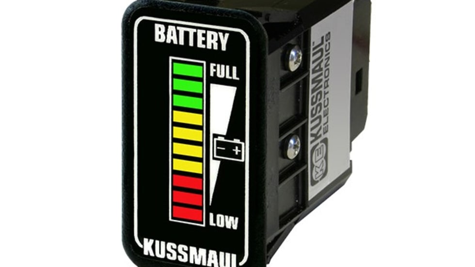 Kussmaul Electronics’ Mini Single Bar Graph Display is a dashboard-mounted indicator displaying a vehicle’s battery status in the cab.