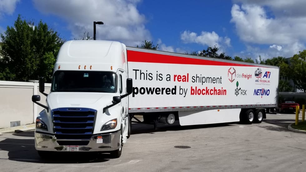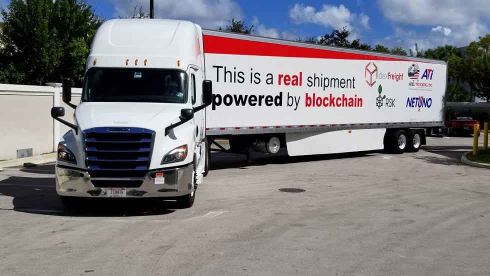 Startup company dexFreight says it has completed its first blockchain-based shipment using smart contracts, allowing the shipper and carrier to directly connect, negotiate rates, and schedule pickup and delivery.