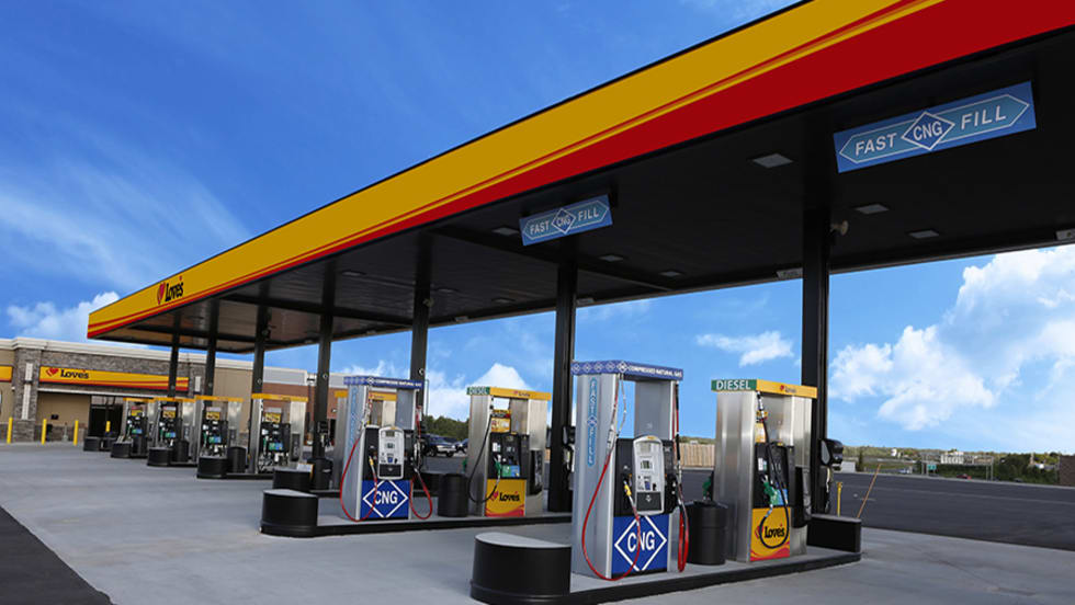 The Love’s Travel Stop in Guthrie, Okla., off Interstate 35, is now offering Fast-Fill compressed natural gas for heavy-duty trucks.