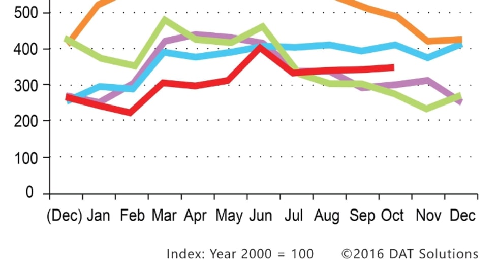 Fallout from Hurricane Matthew and the Hanjin Shipping bankruptcy helped push spot market rates higher over the past week, according to the freight matching service provider DAT Solutions, while a separate report shows rates in September were mixed when compared to the previous month and a year ago.
