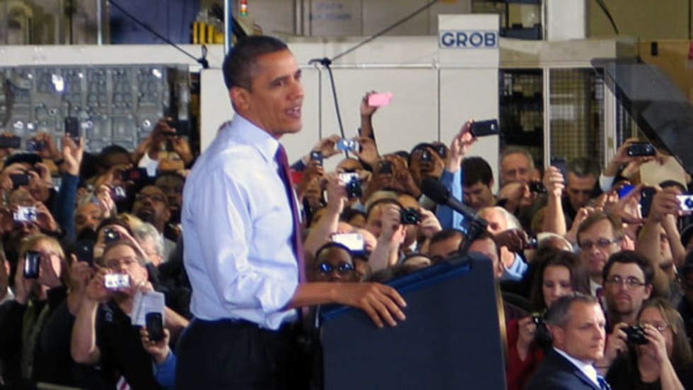 President Barack Obama visited Detroit Diesel Corp. in Redford, Mich., to recognize Daimler Trucks North America's decision to invest $120 million in facilities to build the new Detroit DT12 automated manual transmission and the new Detroit DD15 proprietary asymmetric turbocharger in the United States