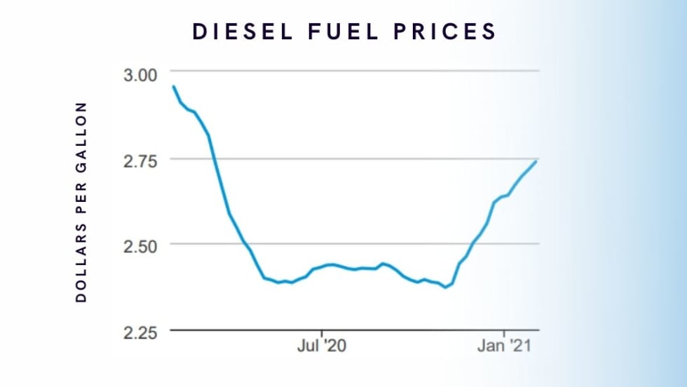 The increase in crude oil prices – and therefore diesel prices – is led by recovering demand and suppressed supply, the roll-out of the COVID-19 vaccine, and falling inventories, analysts say.