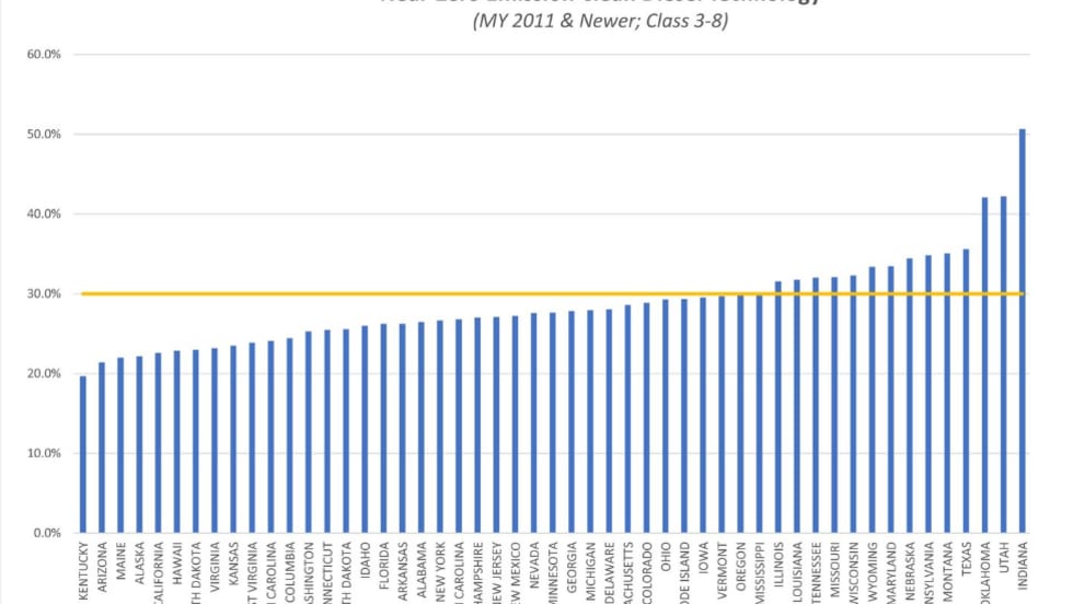 Clean diesel truck engines and emissions control systems now make up on average 30% of all heavy-duty commercial vehicles in operation in the U.S. as a result of adoption by fleets over the past five years, according to a recent report commissioned by the Diesel Technology Forum.