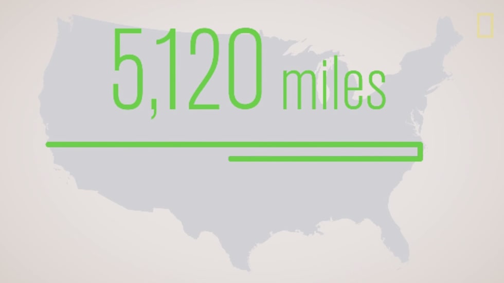 The produce we buy at grocery stores travels an average of over 5,000 miles before it gets to our homes. This journey is mostly made possible by the U.S. trucking industry, which transports 70% of all U.S. agricultural products. To illustrate the incredible distances our food travels, National Geographic made this video as part of their Food By the Numbers series, detailing the long journey taken by a truck full of strawberrys from farm to grocery store.