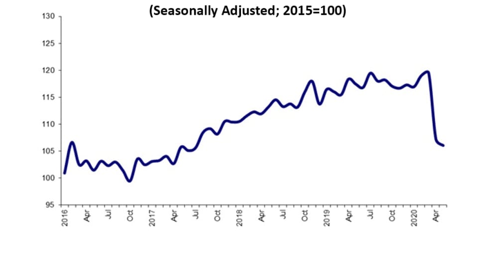 The American Trucking Associations’ advanced seasonally adjusted (SA) For-Hire Truck Tonnage Index only decreased 1% in May to 106.1 after falling 10.3% in April to 107.2.
