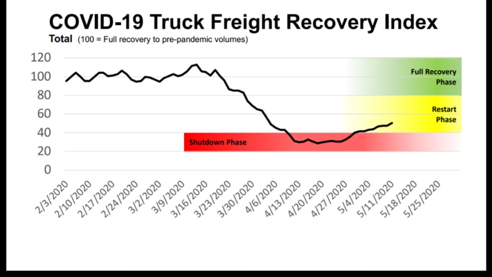 Trucking conditions likely bottomed in mid-April, but a speedy recovery isn’t anticipated, according to FTR.
