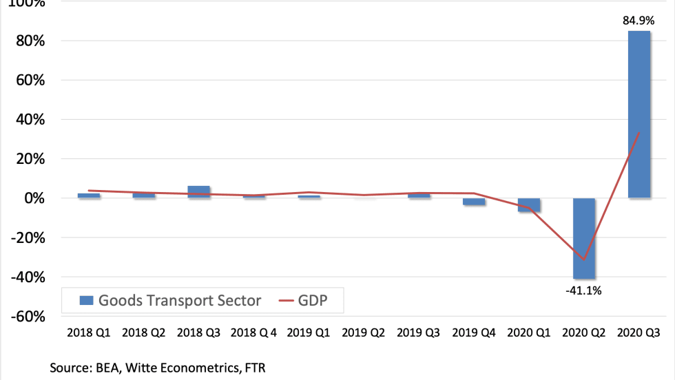 When we drilled into third-quarter GDP to look at the segments of the economy linked to freight demand, the results far exceeded our forecast.