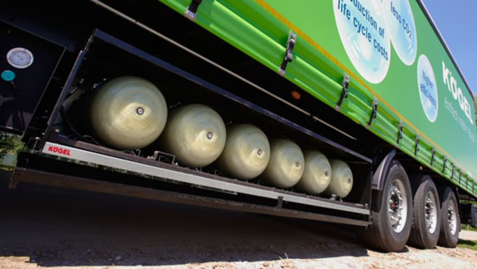 One of the key factors limiting the use of compressed natural gas in trucks has been the question of range. A commercial vehicle body and trailer manufacturer based in Germany may have a solution -- putting extra CNG tanks on the trailer