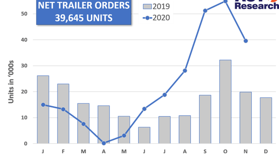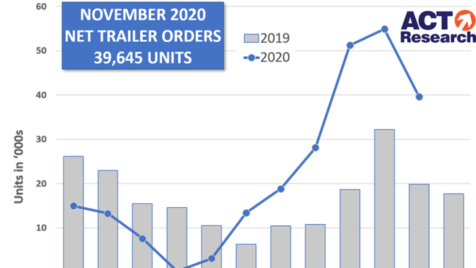 ACT Research said that while overall trailer orders in the U.S. fell off in November, the market segment remains strong overall.