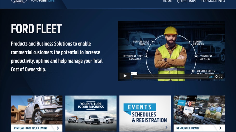A new virtual event series for Ford fleet customers, Ford Fleet Live, will allow customers to check out the newest Ford commercial vehicles, discover trends, get tools to improve their businesses, and talk one-on-one with product experts.