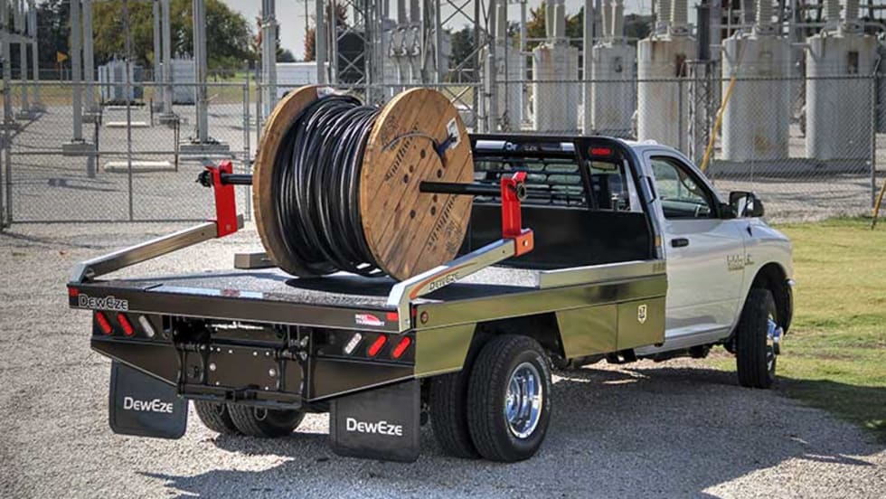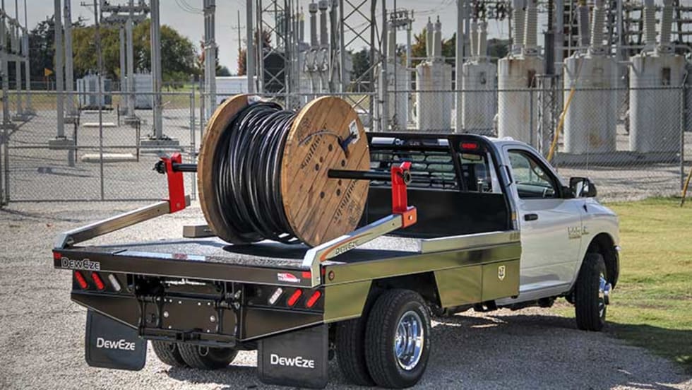 The RT Bed by DewEze is a self-loading reel lift designed to load and transport spools without the need for a trailer.