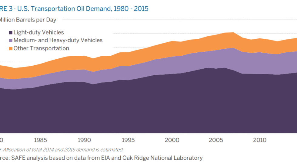 Securing America's Future Energy found that long-haul trucks account for 13% of daily petroleum consumption. Its new report says adopting 33-foot twin trailers and platooning technologies in the trucking industry could help save fuel and reduce U.S. dependence on oil.