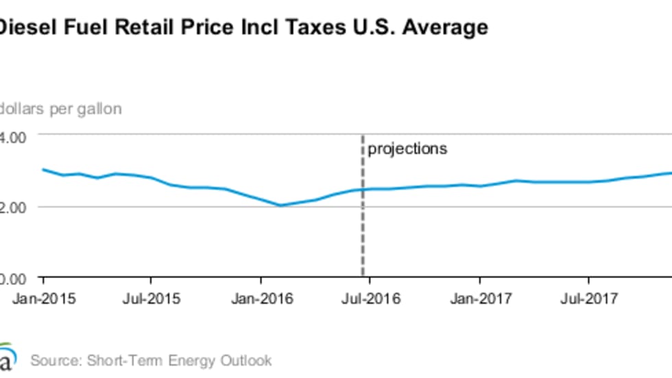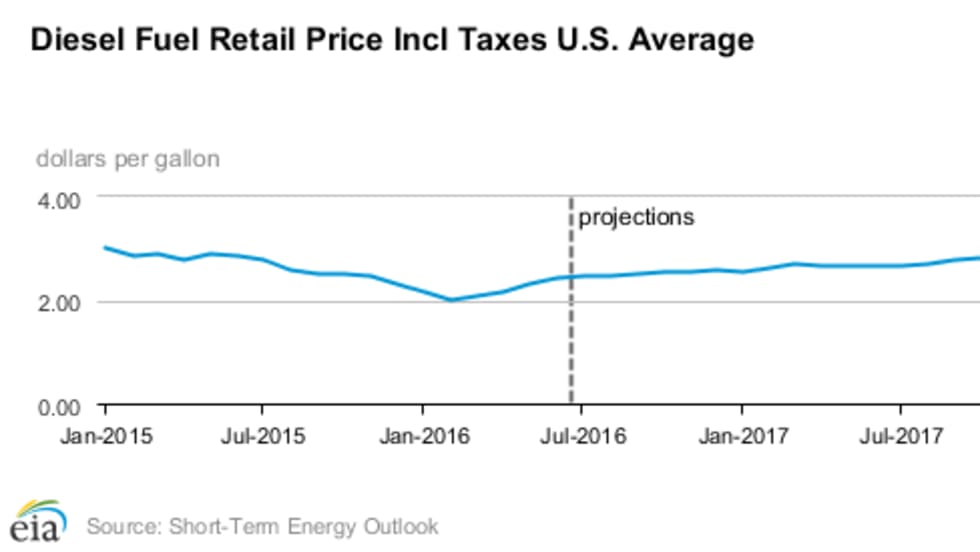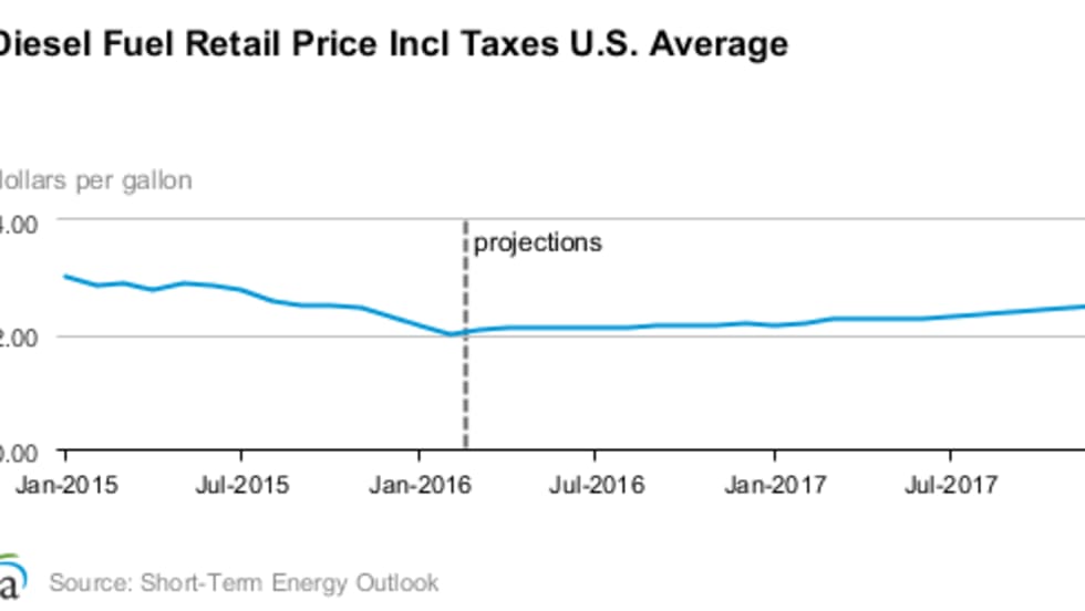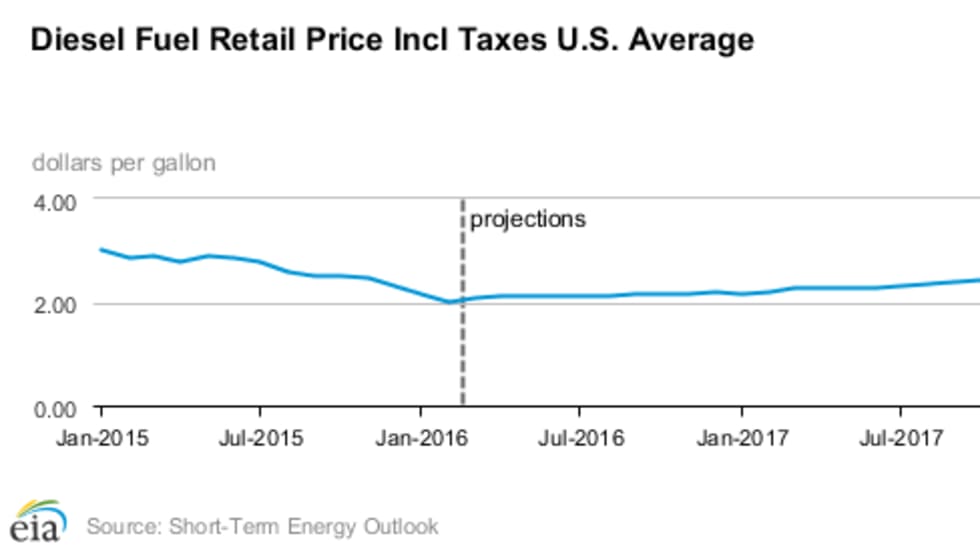 Average prices for trucking’s main fuel along with those for gasoline and crude oil are all expected to remain low this year, according to the latest U.S. Energy Department Short-Term Energy Outlook, and aren’t expect to rise significantly next year.