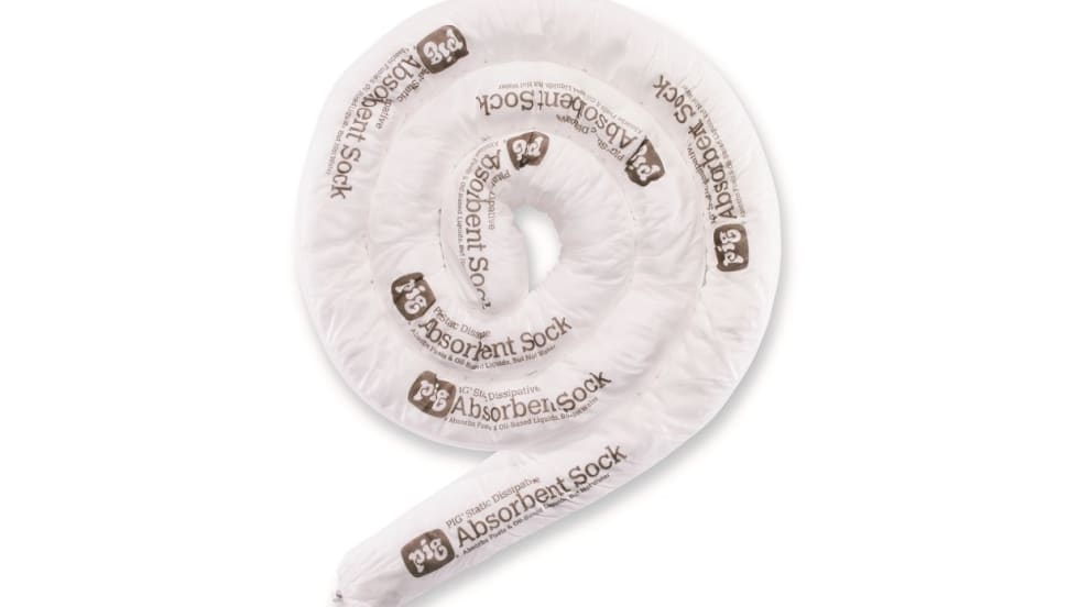 New Pig Corporation’s Pig Static-Dissipative Absorbent Sock is a spill clean-up device that also dissipates static and is designed for fuels and solvents.