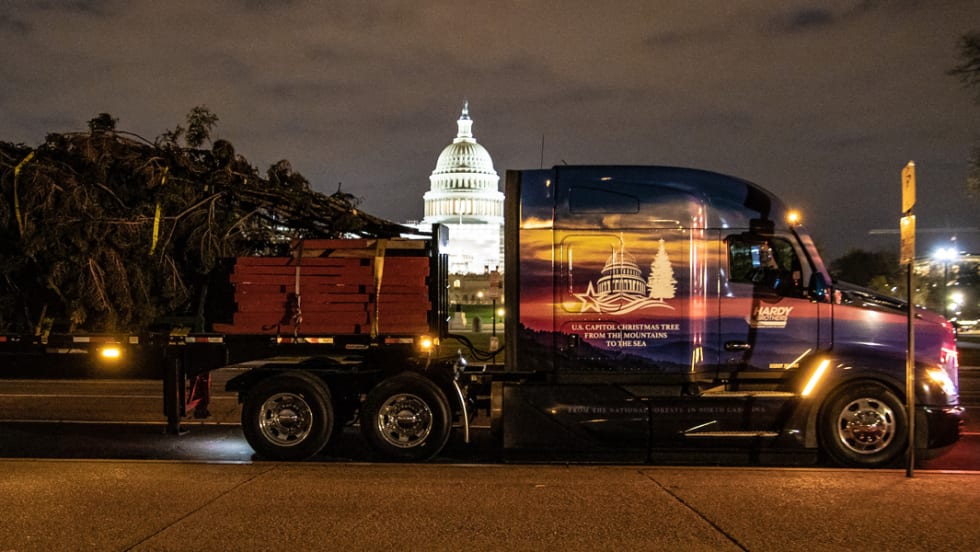 A husband-and-wife truck driver team for Hardy Brothers delivered the U.S. Capitol Christmas tree from North Carolina to Washington, D.C. Read what it takes to transport the tree.