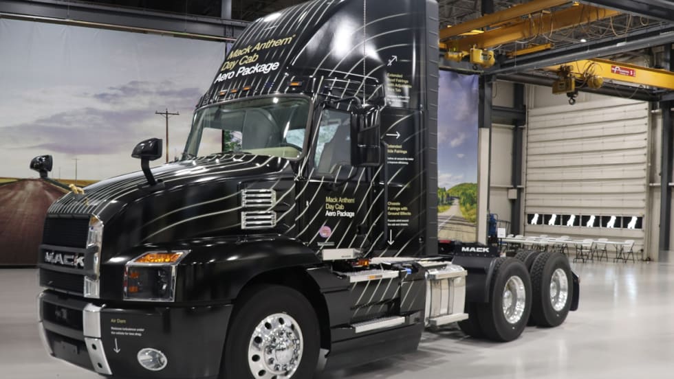 Mack Trucks now offers a new Mack Anthem day cab roof fairing with a taller profile to allow better air flow over the trailer and reduce drag.