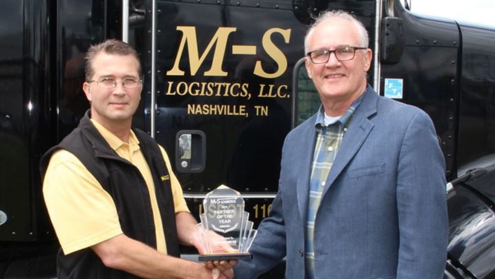 M-S Logistics has presented their Partner of the Year award to Marangoni Tread North America. The award was presented by M-S Logistics’ safety and maintenance director Mike Elliott.