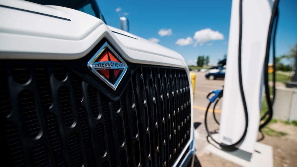 Navistar's latest electric-vehicle news includes a new charging infrastructure partnership, new options and applications for its International eMV battery-electric truck, and a tease of a heavy-duty EV.
