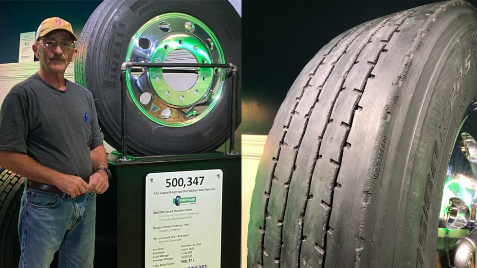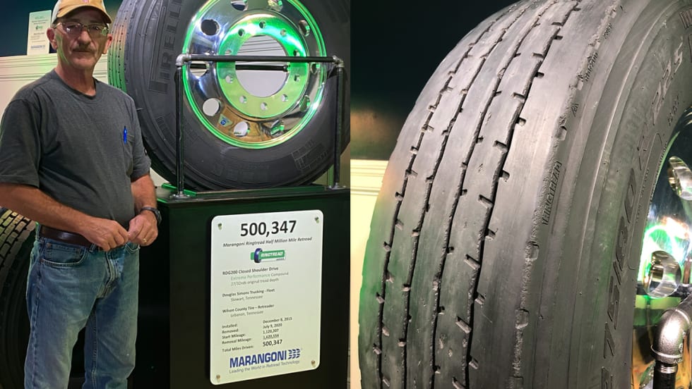 Marangoni Tread North America recently announced that an RDG 200 Ringtread Drive retread has past the 500,000-mile mark.