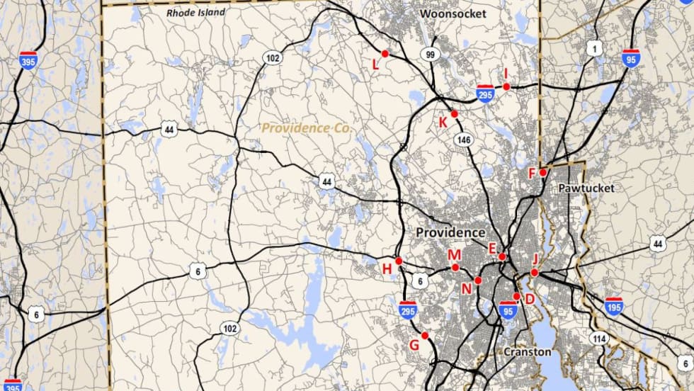 The Rhode Island Department of Transportation has provided a list of the locations under consideration for placing toll gantries, should lawmakers approve a controversial plan to begin truck-only tolling.