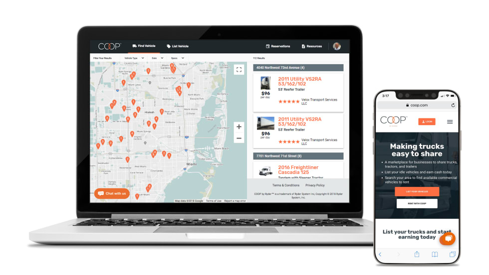 Ryder's COOP is a peer-to-peer digital platform that allows businesses to reliably and safely rent vehicles from each other, while offering a more cost-effective and accessible alternative to traditional rental methods.