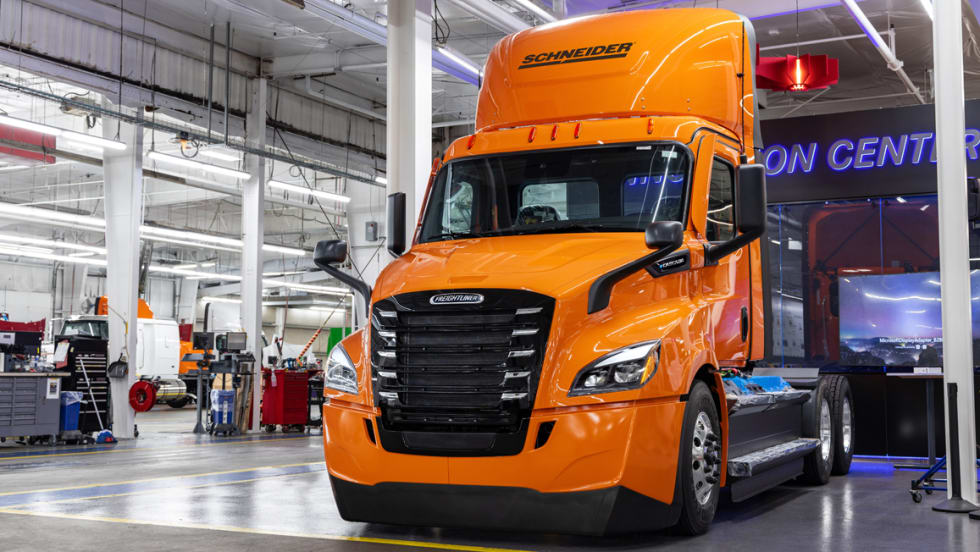 Schneider’s first Freightliner eCascadia is set to roll off the assembly line at DTNA's plant in Portland, Oregon.