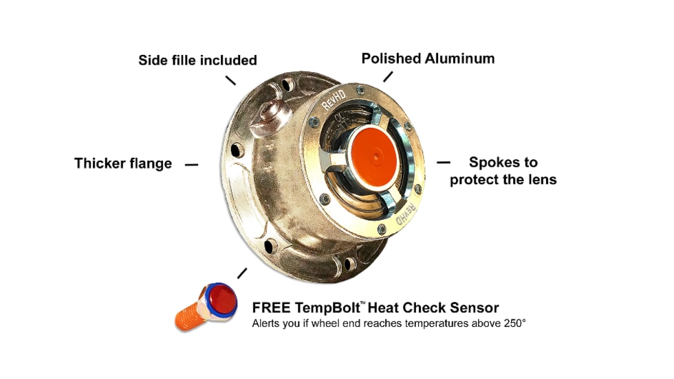 RevHD has produced a new line of severe-duty hub caps that can alert you if your wheel end reaches temperatures above 250 degrees Fahrenheit.