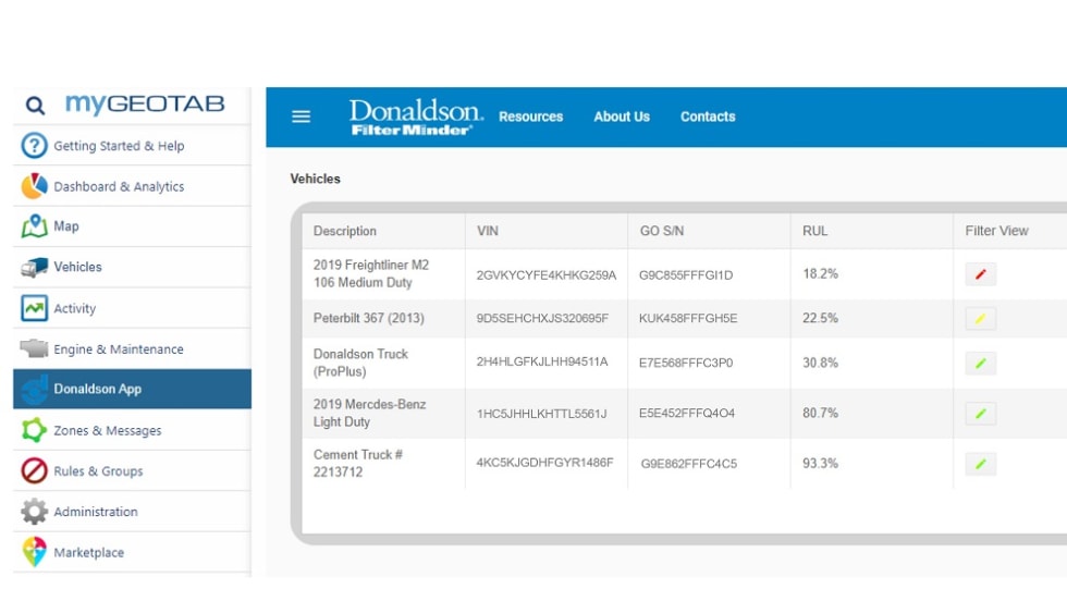 Donaldson Company announced that its upcoming wireless Filter Minder monitoring system for truck air filters will be integrated into Geotab’s fleet management platform.