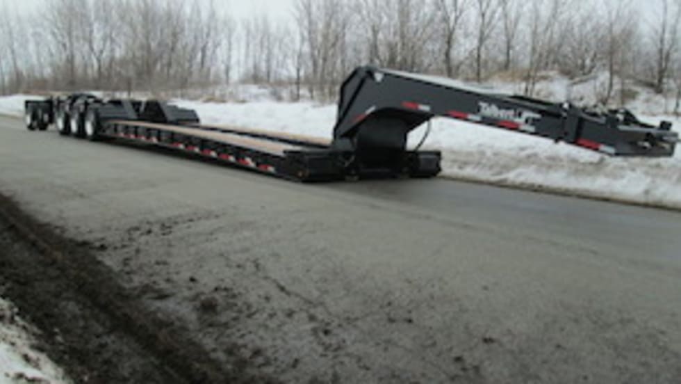 The 55-Ton Spread-Axle, Low-Deck trailer (55SA-LD) from Talbert Manufacturing features an 18-inch deck height and an E1Nitro so it can run with three axles, four axles close-coupled or as a 3+1 spread-axle.