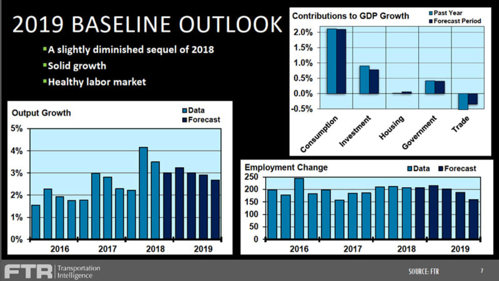 Despite an overall positive truck sales forecast for 2019, tariffs and trade wars could be stumbling blocks that trip up the economy and send freight and truck sales downward, said two longtime industry analysts.