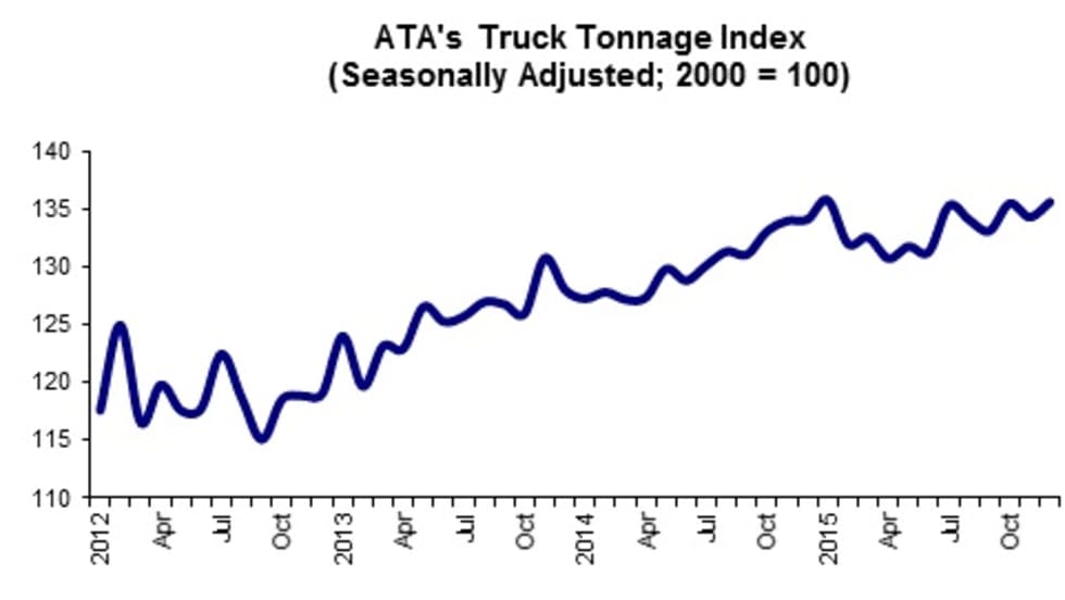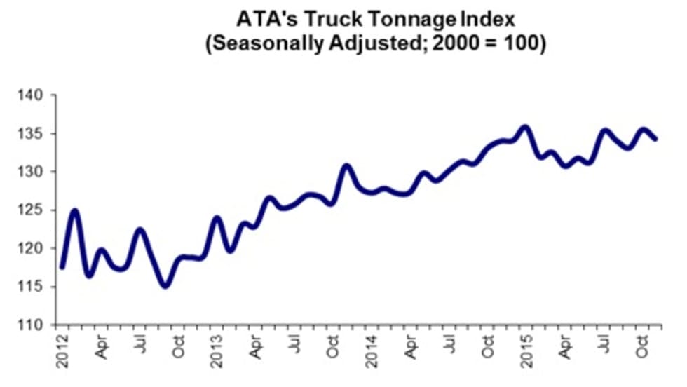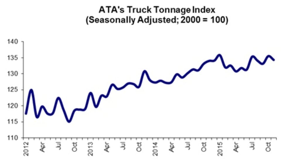 American Trucking Associations’ advanced seasonally adjusted For-Hire Truck Tonnage Index increased 1% in December, ending 2015 on a strong note despite an overall slow year.