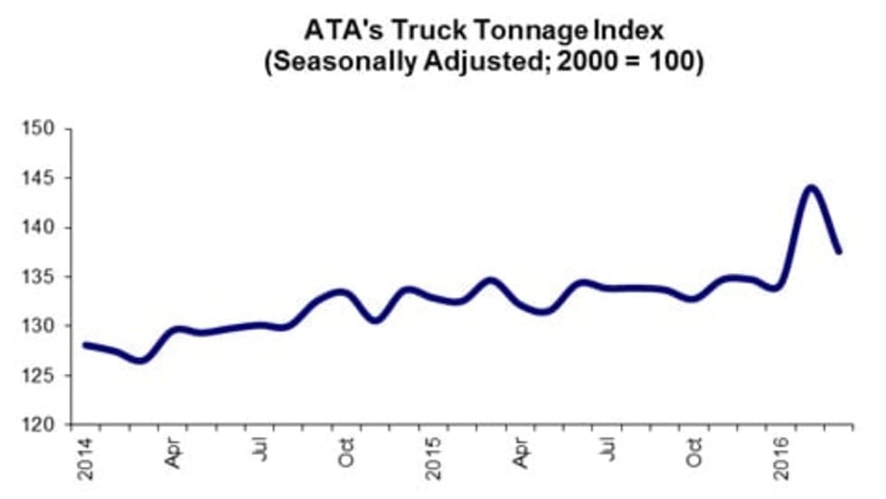 American Trucking Associations’ seasonally adjusted For-Hire Truck Tonnage Index declined 0.9% in November, erasing half of the 1.8% gain from October.