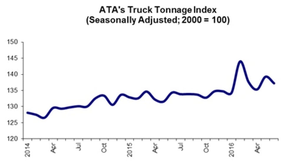 Truck tonnage in July hit its lowest level since October 2015, per the most recent American Trucking Associations' advanced seasonally adjusted For-Hire Truck Tonnage Index.