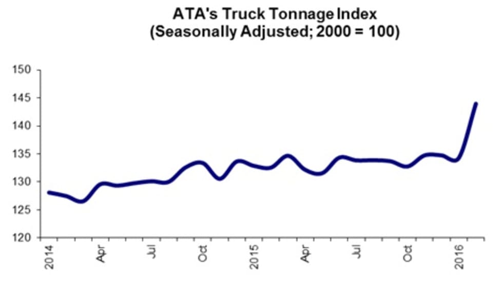 American Trucking Associations’ For-Hire Truck Tonnage Index rose by 7.2% in February, hitting an all-time high reading of 144.
