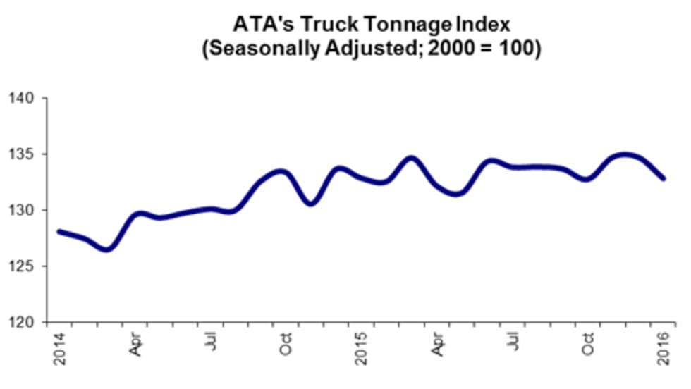 The American Trucking Associations’ seasonally adjusted For-Hire Truck Tonnage Index fell 1.4% in January following a flat December reading.
