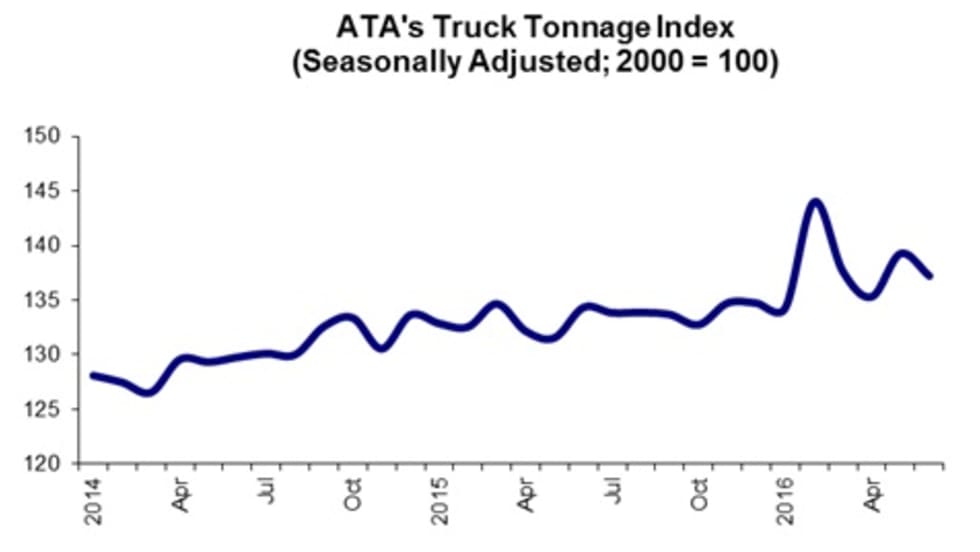 American Trucking Associations’ advanced seasonally adjusted For-Hire Truck Tonnage Index dropped by 1.5% in June, following a nearly 3% gain in May.