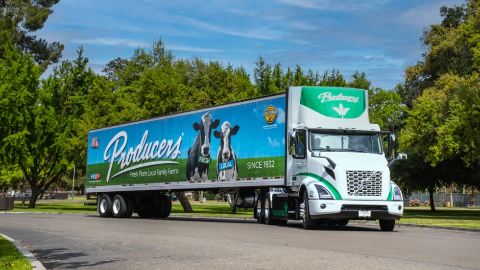 Two Volvo VNR Electric will be the first Class 8 battery-electric vehicles in Producers Dairy’s fleet of more than 300 trucks and will service regional distribution routes.
