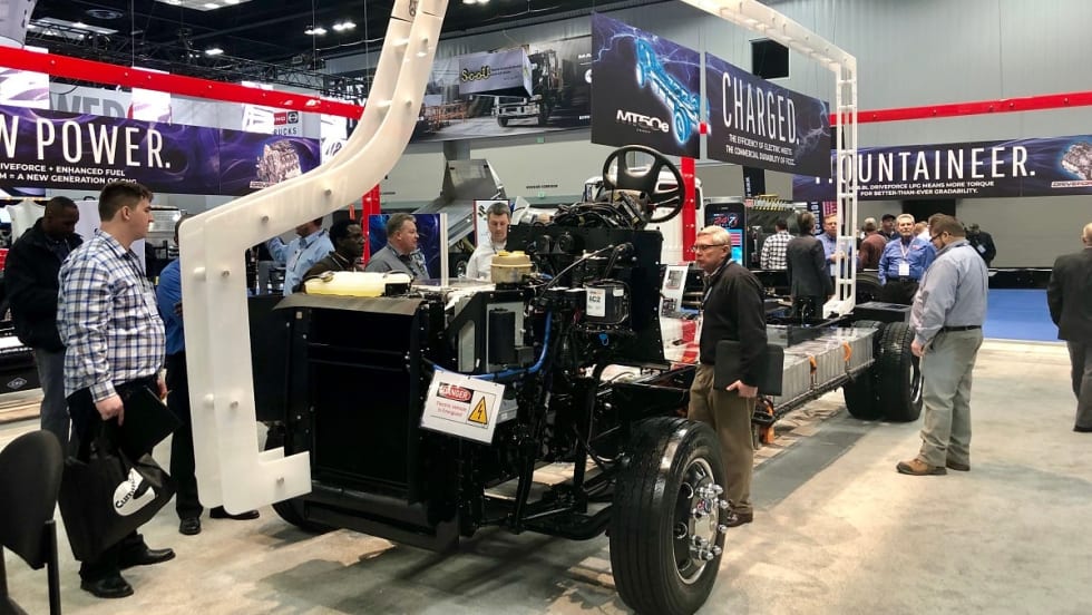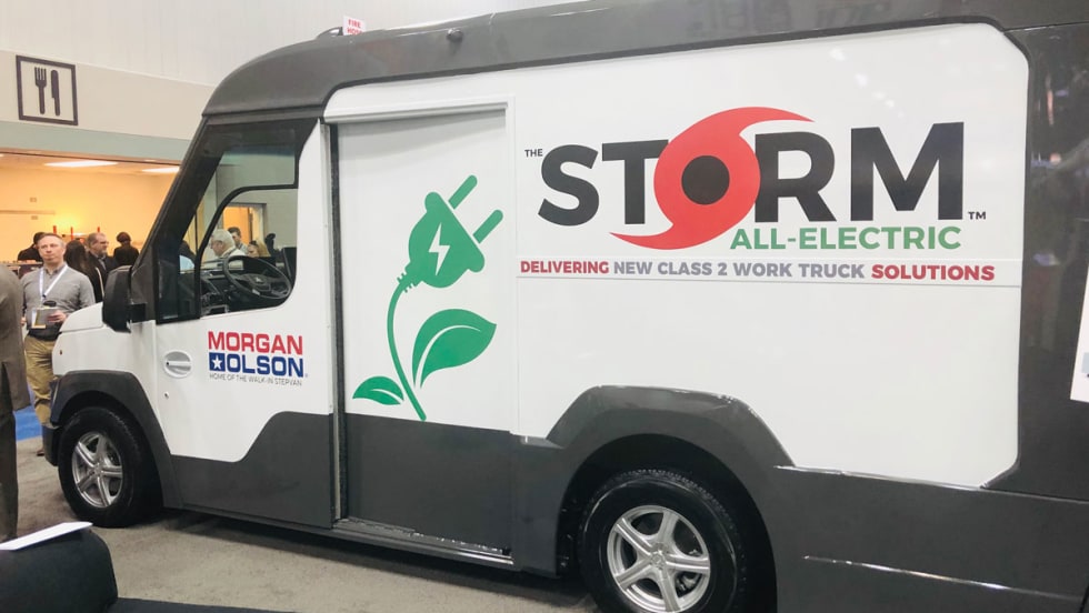 Morgan Olson revealed step-van prototypes at the Work Truck Show. One is gasoline-powered, while the other makes use of a BMWi EV electric powertrain, which Morgan Olson said powers over 65,000 vehicles in Europe and is being readied for the North American market.