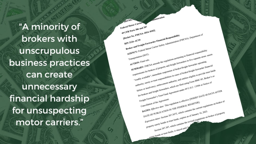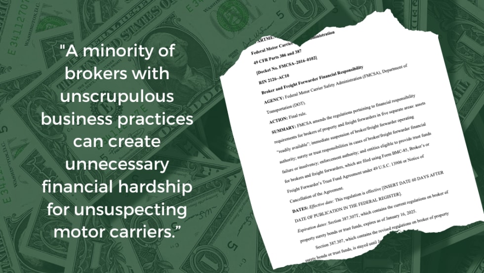 The Federal Motor Carrier Safety Administration said its new rules about financial responsibility requirements for freight brokers can help cut down on fraud and non-payment of motor carriers.