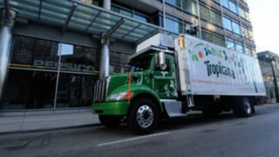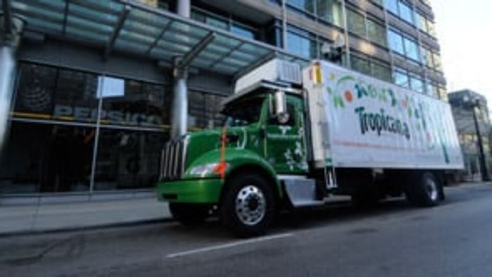 Tropicana, a division of PepsiCo, has taken delivery of two new hybrid diesel-electric medium-duty Peterbilt trucks, which service downtown Chicag