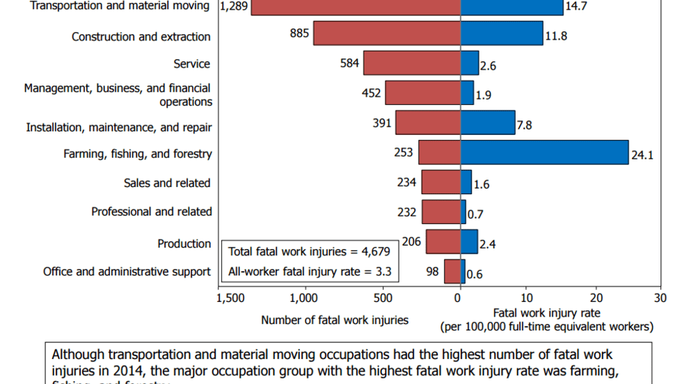 Fatal work-related injuries to commercial truck drivers last year reached their highest level in six years, per a summary of preliminary results from the Census of Fatal Occupational Injuries for 2014 just released by the Bureau of Labor Statistics.