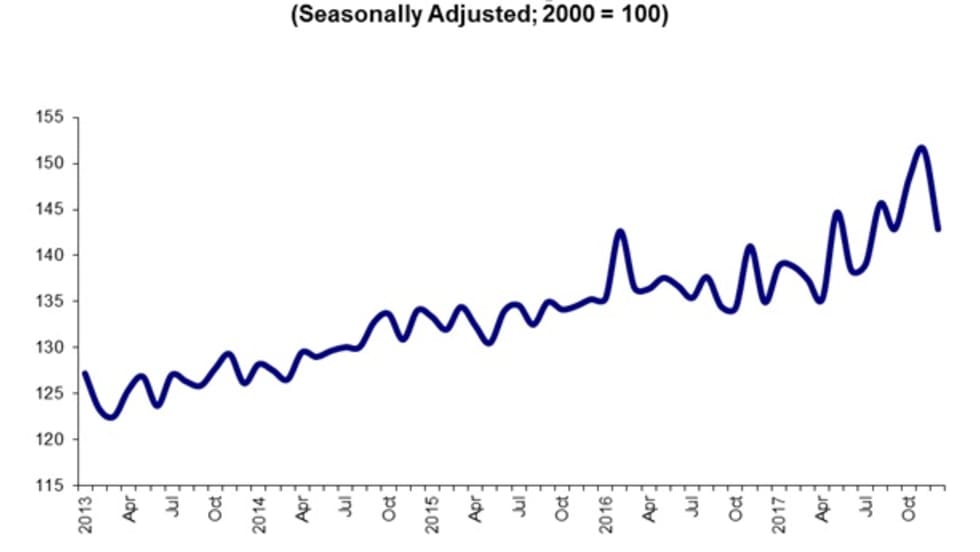 The American Trucking Associations' advanced seasonally adjusted For-Hire Truck Tonnage Index increased by 3.7% overall in 2017 compared to the year before, marking its largest annual gain since 2013.