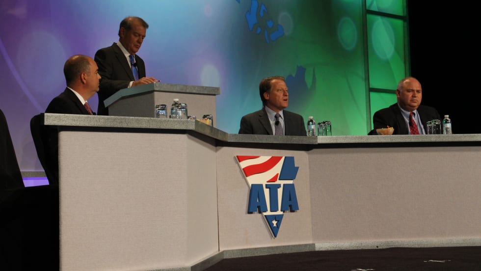 The economy and freight continues to chug along in an "OK" mode, while stagnant capacity and new and pending regulations put the industry "on the cusp of a capacity crunch" if the economy speeds up, according to a panel of economic and industry experts at the American Trucking Associations' annual convention Sunday.