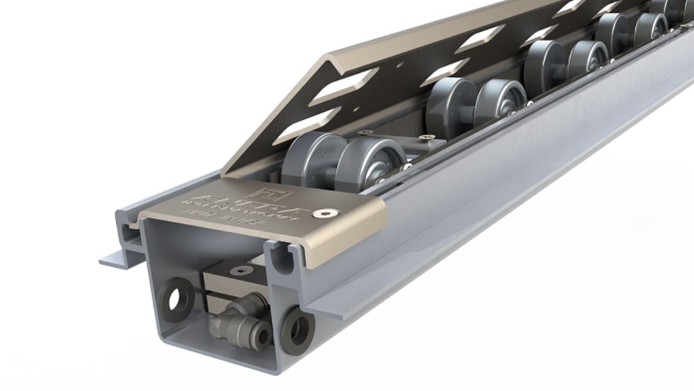 The Retract-A-Roll 3 from Ancra International is a pneumatic roller track system designed for faster loading and unloading to reduce handling time for employees.