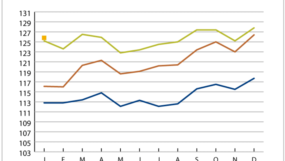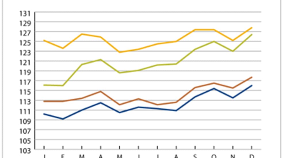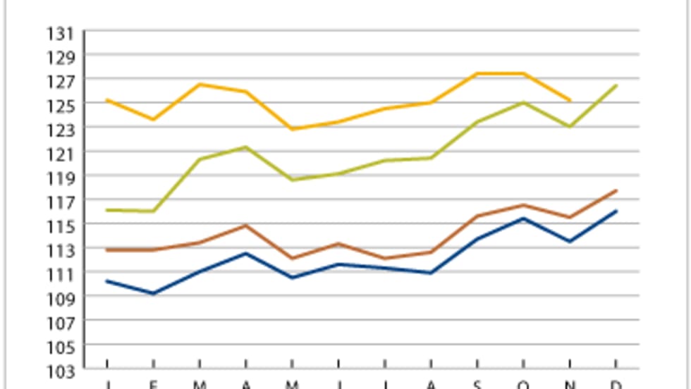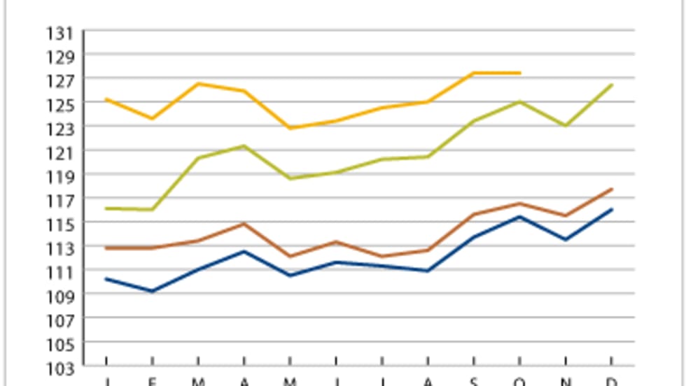 A measure of truckload rates moved higher in October from the same time last year, while intermodal rates continued moving lower, according to newly released figures.